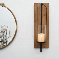 Candelabro de Pared Navideño de Madera Natural Hecho a Mano, Portavelas, Soporte para Velas de Pilar, Exhibición para Chimenea