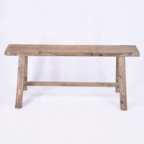 Luckywind 내추럴 러스틱 앤티크 프렌치 스타일, 실내외 겸용 디스트레스드 고재 원목 롱 벤치 스툴