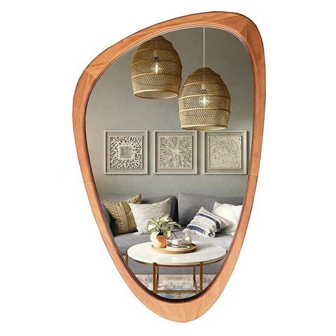 사용자 정의 빈티지 대형 비대칭 유기 불규칙한 단단한 소나무 나무 프레임 큰 긴 가정 장식 벽 교수형 거울 espejo spiegel