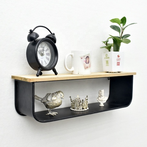 2 Tier קיר תפאורה מדף מתכת עץ כפרי דקורטיבי תליית מדפים צפים הר קישוט ריהוט עץ קיר מדפים