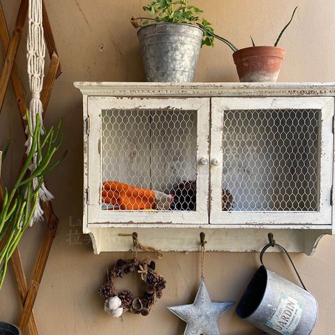 Amerikaanse Landelijke Stijl Goedkope Houten Distressed Decoratieve Wandkast Tuin Opslag En Coffeeshop Decoratie Opbergkast