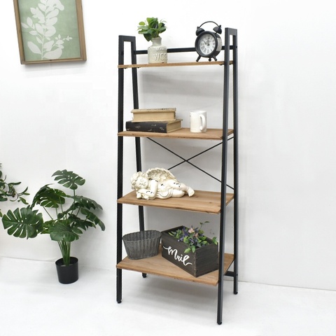 Luckywind תעשייתי מתכת ברזל עץ מדף ספרים מכירה לוהטת כוננית מתכת מצופה אבקה כפרי ספר עתיק מתלה תצוגת מדף