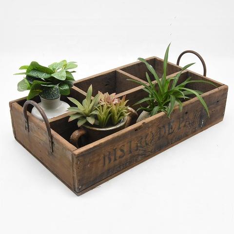 Großhandel rustikale Vintage recyceltes Holz 5-Gitter Vintage Distressed Aufbewahrung sbox Schublade Schreibtisch Holz geteilte Tablett mit Metall griff