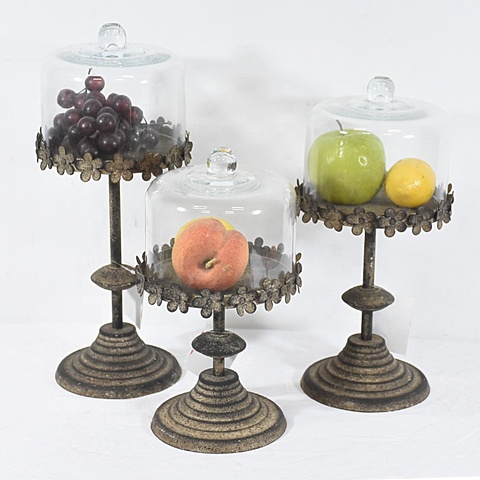 Lucky wind Vintage 3 Stück dekorative Metall Kuchenst änder Set, runde Kuchenst änder Metall Display Cupcake Ständer mit Glaskuppel abdeckung