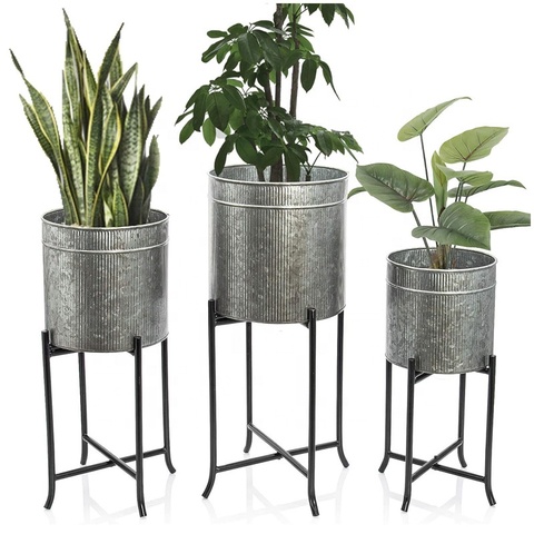 Macetas grandes de Metal para interiores y exteriores del fabricante para plantas decorativas para jardín, maceta de Metal galvanizado para decoración del hogar y el jardín