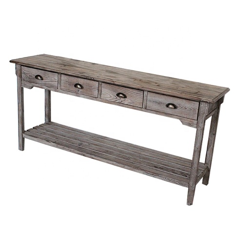 Luckywind – Table de Console en bois français Vintage, bois naturel, Long et étroit, avec 4 tiroirs