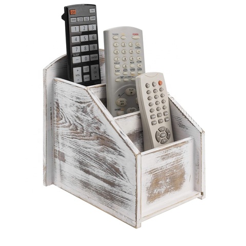 Побеленный деревянный держатель дистанционного управления для гостиной