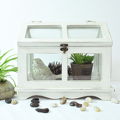 บ้านไร่สไตล์วินเทจไม้ในร่มมินิสวนเรือนกระจก